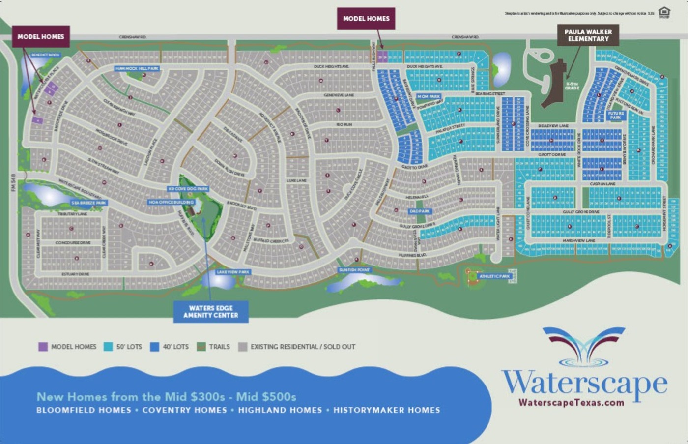 Join the community that offers friends and fun! Waterscape will consist of 1,100 new homes at buildout, inhabited by residents just like you. Residents who want to connect to neighbors, who desire nearby friends, and who like the idea of daily interaction through strategically placed home sites and fun activities.